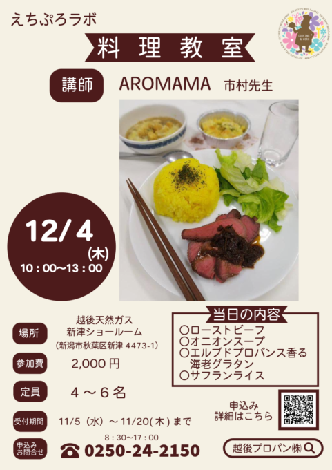 12月えちぷろラボ「料理教室」のお知らせ
