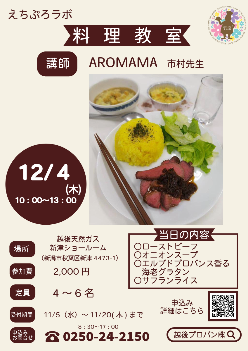 > > > 12月えちぷろラボ「料理教室」のお知らせ